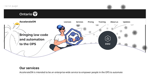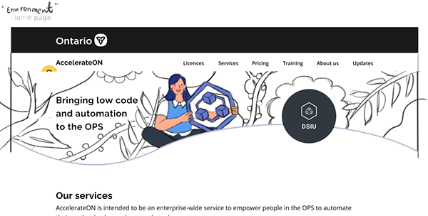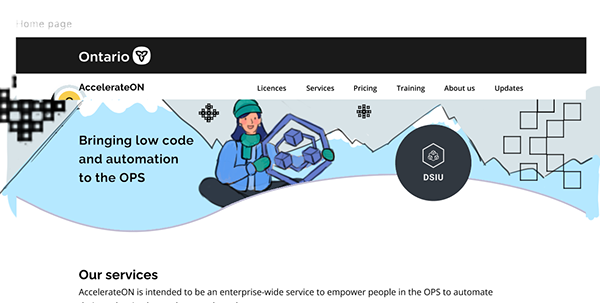 AccelerateON is the portal page for the Digital Solution & Innovation Unit (DSIU). The DSIU is responsible for automating processes across the Ontario Public Service (OPS).
