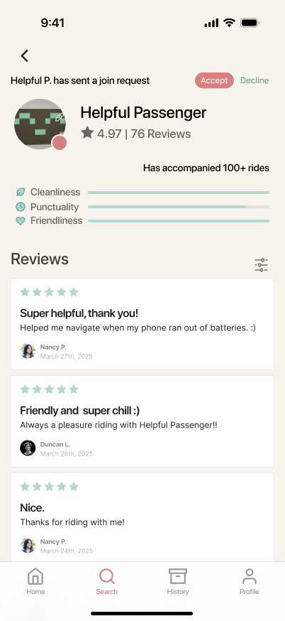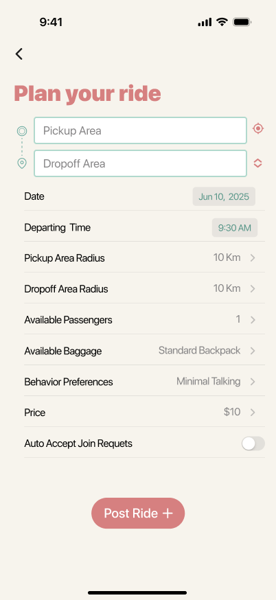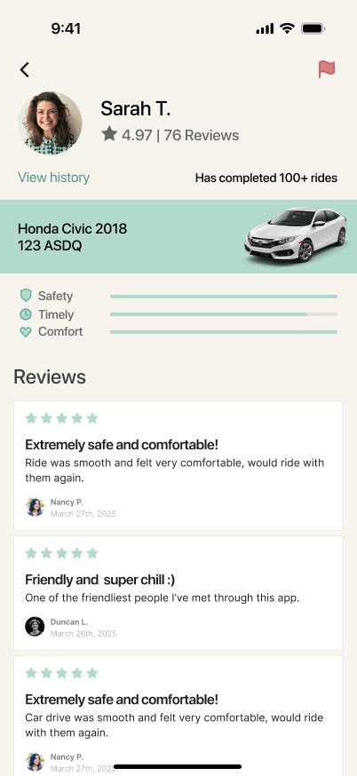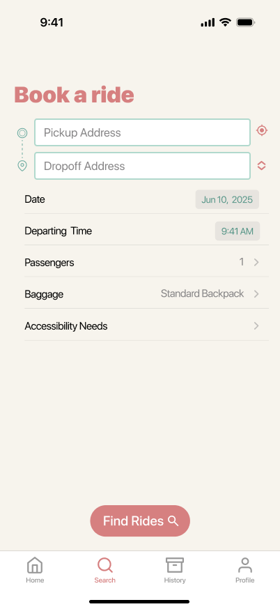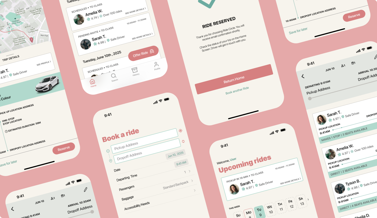 The redesigned “Find a Ride” flow prioritizes clarity and efficiency through a simplified layout and modern visual hierarchy. Each screen clearly guides users toward the next action while offering flexible fallback options, allowing users to confidently review and adjust their choices without friction.