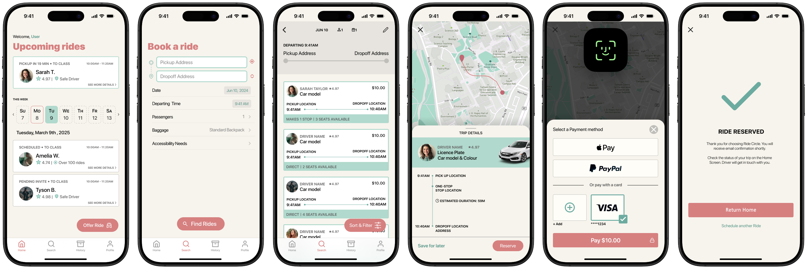RideCircle is a mobile prototype designed to help university students coordinate carpools with peers who share similar routes or schedules. The goal is to reduce transportation costs for students while addressing traffic congestion and promoting more sustainable commuting habits. Many students rely on expensive or inefficient transportation options due to limited access to affordable, coordinated carpooling solutions.